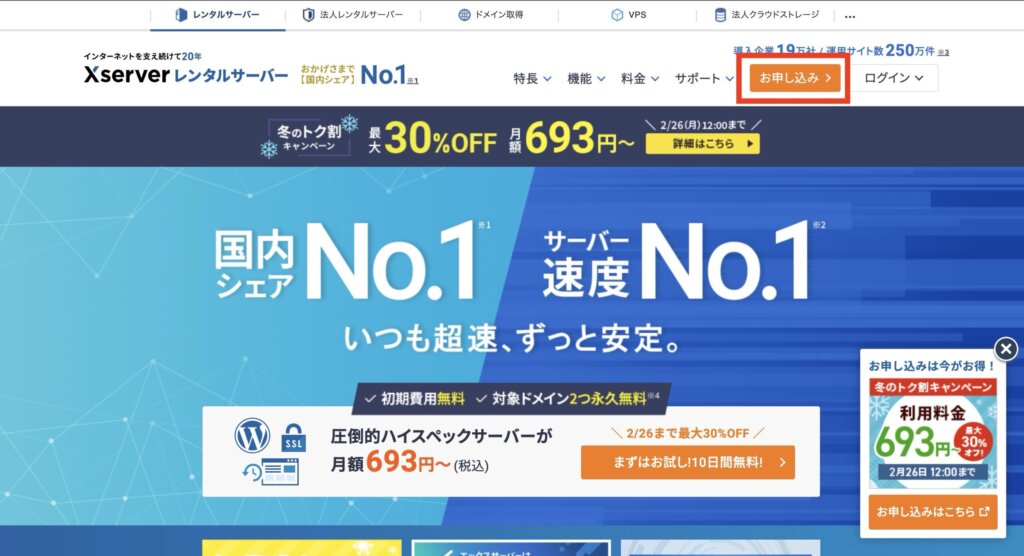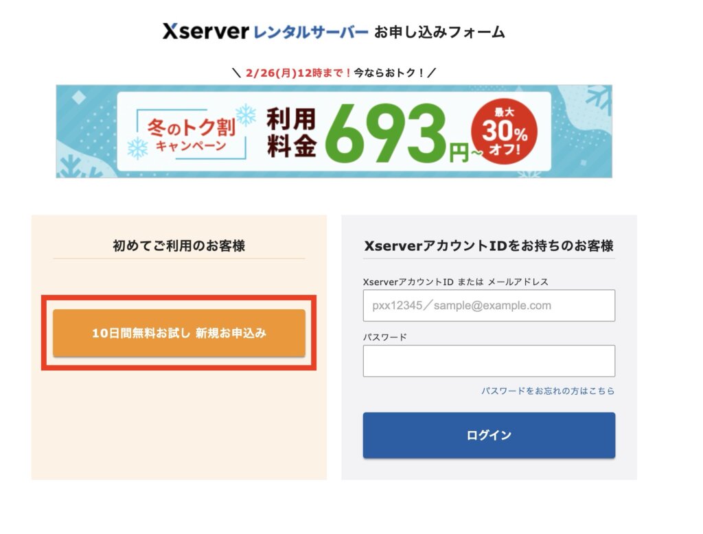 【3】「10日間無料お試し 新規お申込み」ボタンをクリック