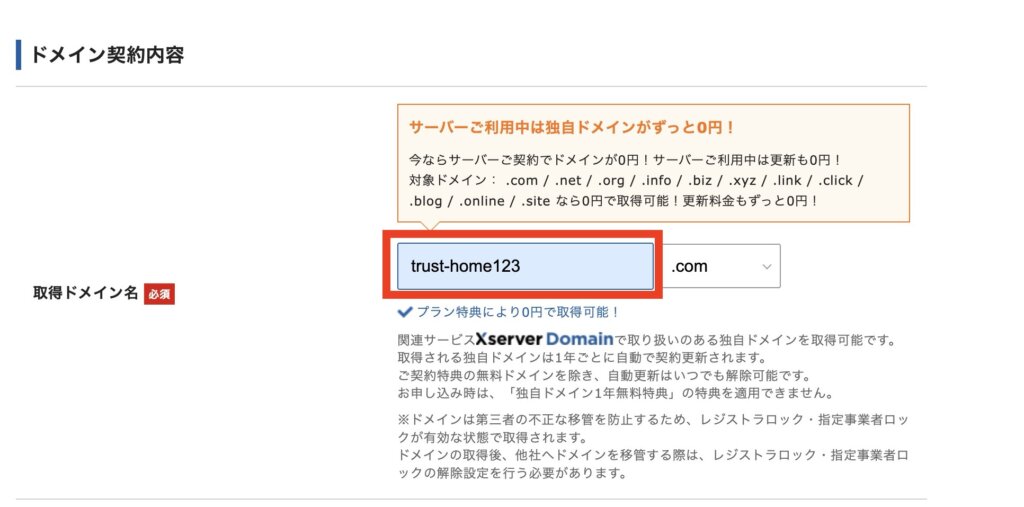 ただこのドメインは後から変更することができませんので、会社名やサービス名など正式なものをご入力ください。