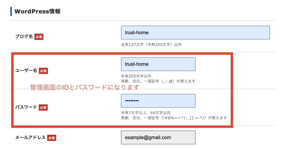 ブログ名・メールアドレスは後から変更できますので、仮のもので構いません。