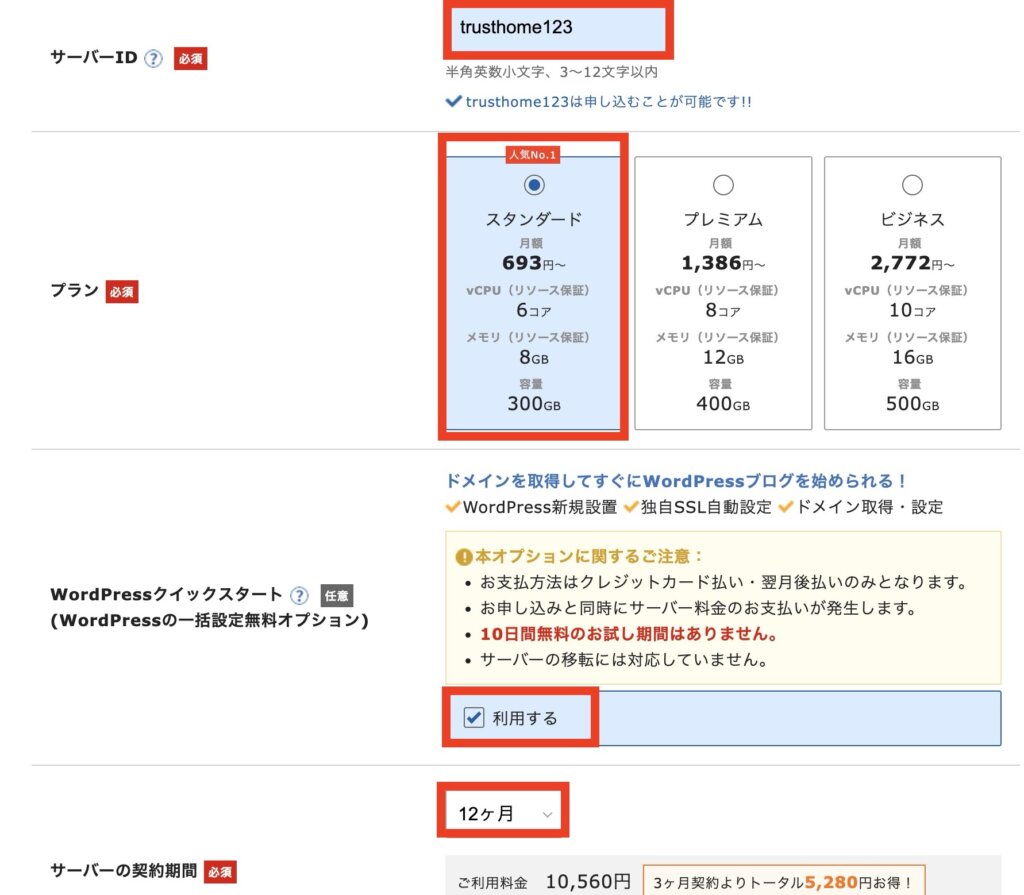 サーバーの契約期間:お任せいたします。期間が長いとお得です!